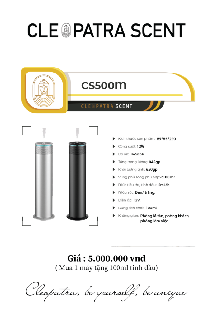Máy khuếch tán tinh dầu hương thơm CS500M dành cho không gian phòng tiếp khách, nhà, văn phòng 100m2 đổ xuống