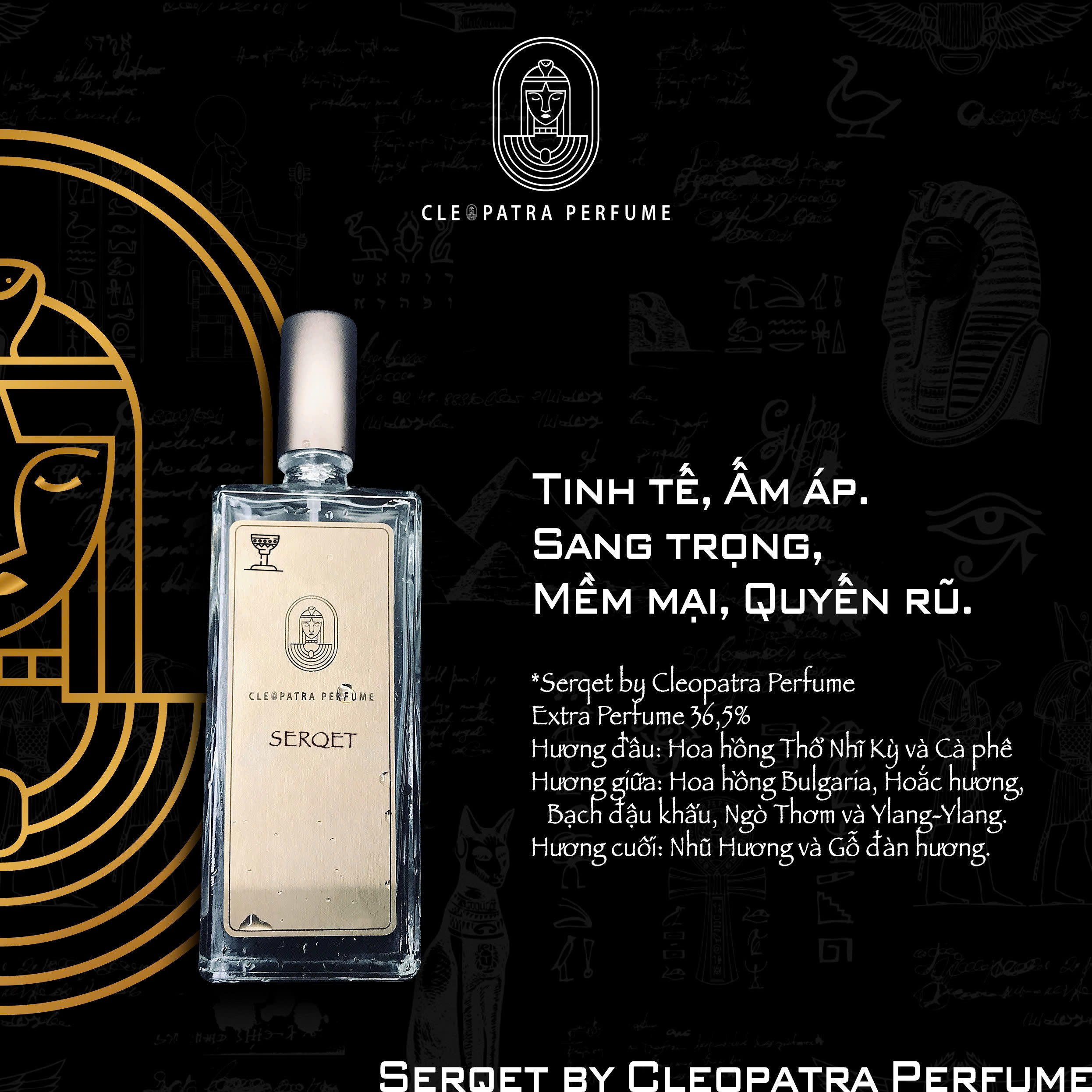 Hatshepsut by Cleopatra, hương nước hoa hương hoa mộc lan, gợi cảm, khiêu khích và sắc bén đã trở thành một biểu tượng vừa cổ điển vừa hiện đại.