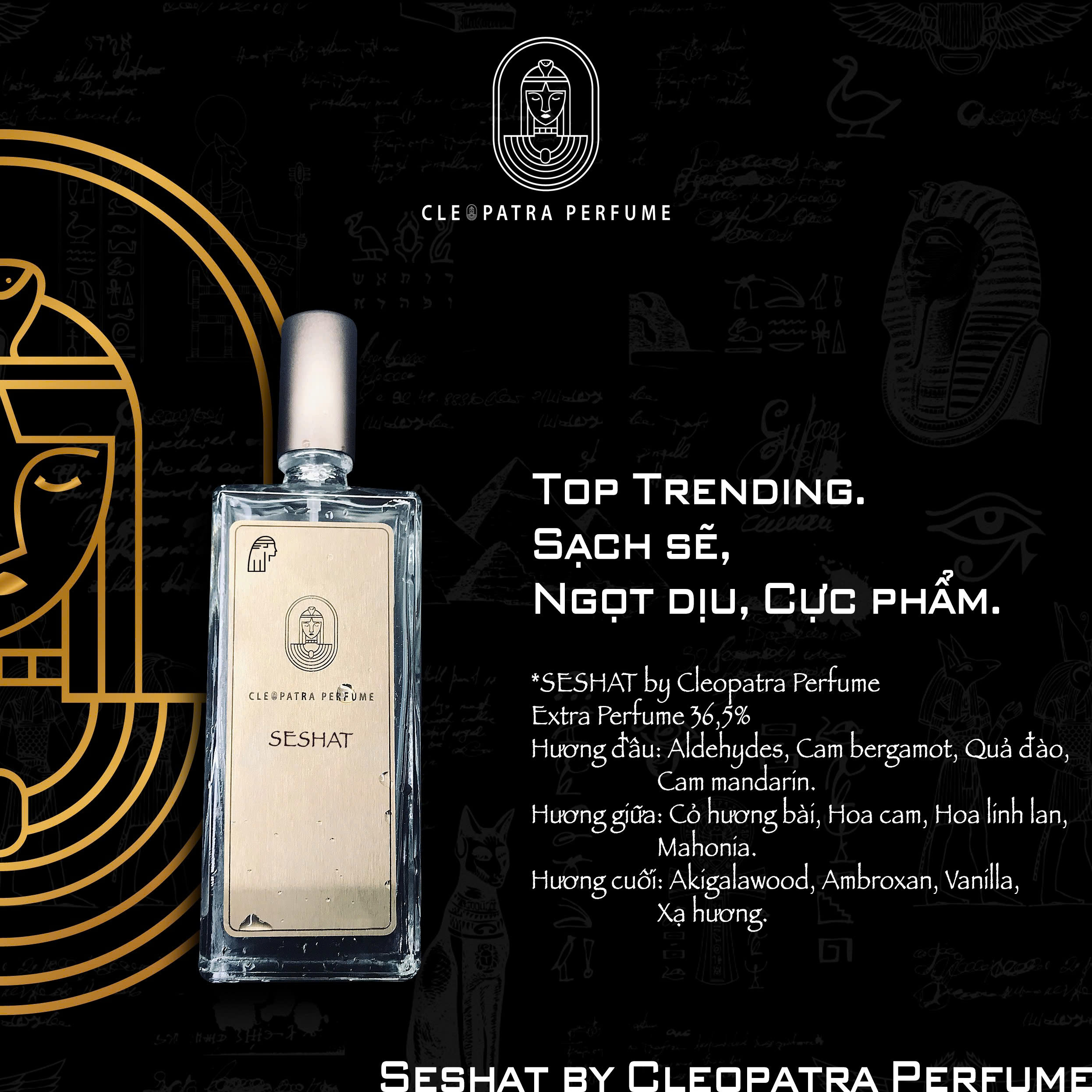 Hatshepsut by Cleopatra, hương nước hoa hương hoa mộc lan, gợi cảm, khiêu khích và sắc bén đã trở thành một biểu tượng vừa cổ điển vừa hiện đại.